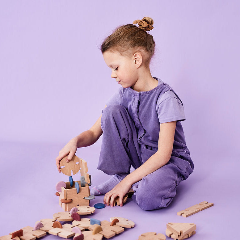 Accessible for all, regardless age, gender, individual differences or additional needs (e.g. sensory disturbance). The toy actively encourages development across various skills, like; cognitive, motoric, spatial imagination, problem solving and decision-making, creative thinking and more! Playing BAVVIC for prolonged periods of time enables focusing on concentration and collaboration and social relations. Children and adults will be able to use the toy to its full capacity. BAVVIC uses principles of circular economy by minimizing production waste and transforming it into new products.