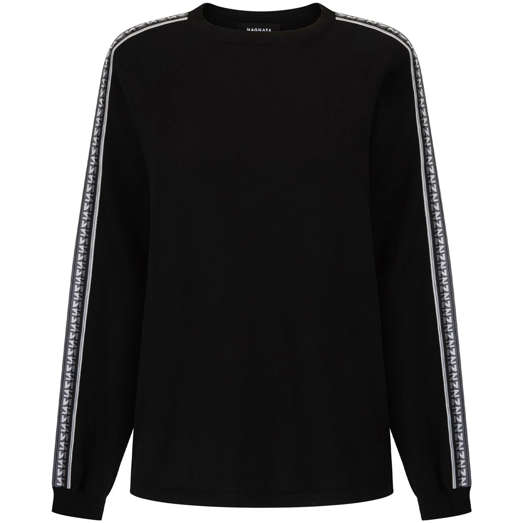 The Symbol Jersey is a relaxed style fashion take on a classic raglan long sleeve, this midweight relaxed style features a rib finish on neckline, cuffs and hem. Custom Nagnata logo graphics woven on recycled polyester tape pay homage to 90's street aesthetic.