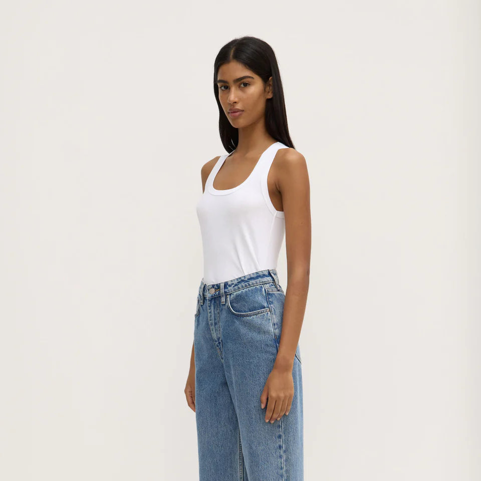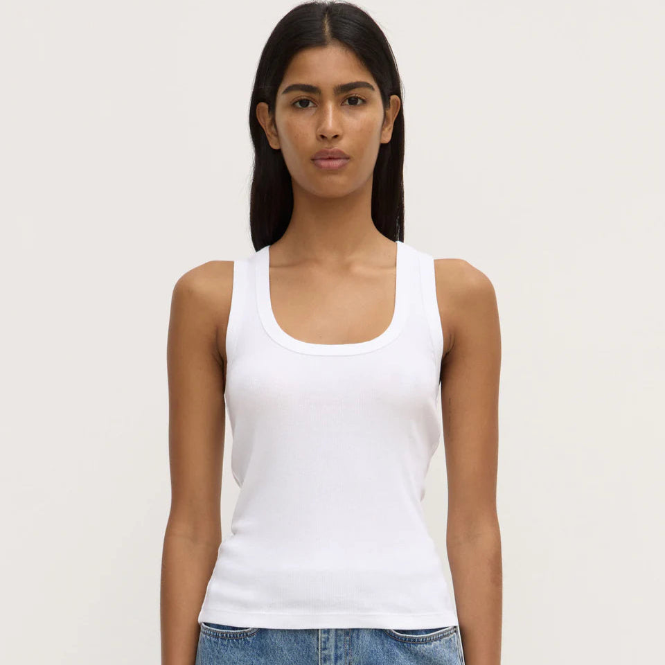 ROBYN SCOOP NECK RIB TANK - WHITE