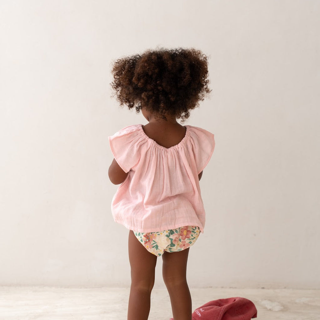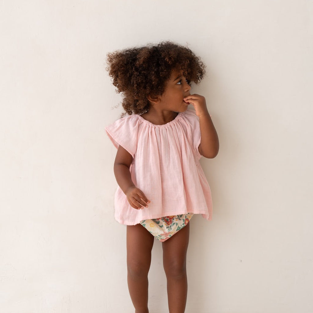 Soft, easy, and endlessly wearable, the Freya Blouse combines a gentle elasticated neckline with a relaxed shape that moves with her. Pair it with our Vali Bloomer, shorts, or skirts to bring a little effortless charm and style to any outfit.