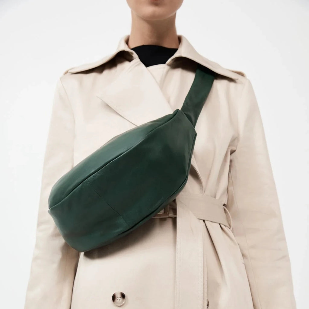 Inspired by our renewed ability to travel, the Soft Crescent Bag is for the modernist on the move. Crafted from a supple, 100% vegetable dyed lamb leather with a cotton lining, the Soft Crescent Bag is designed to be slung across the body for hands-free action. Boasting a croissant shaped body, thick strap and zip-up closure, perfect for home and travel alike.