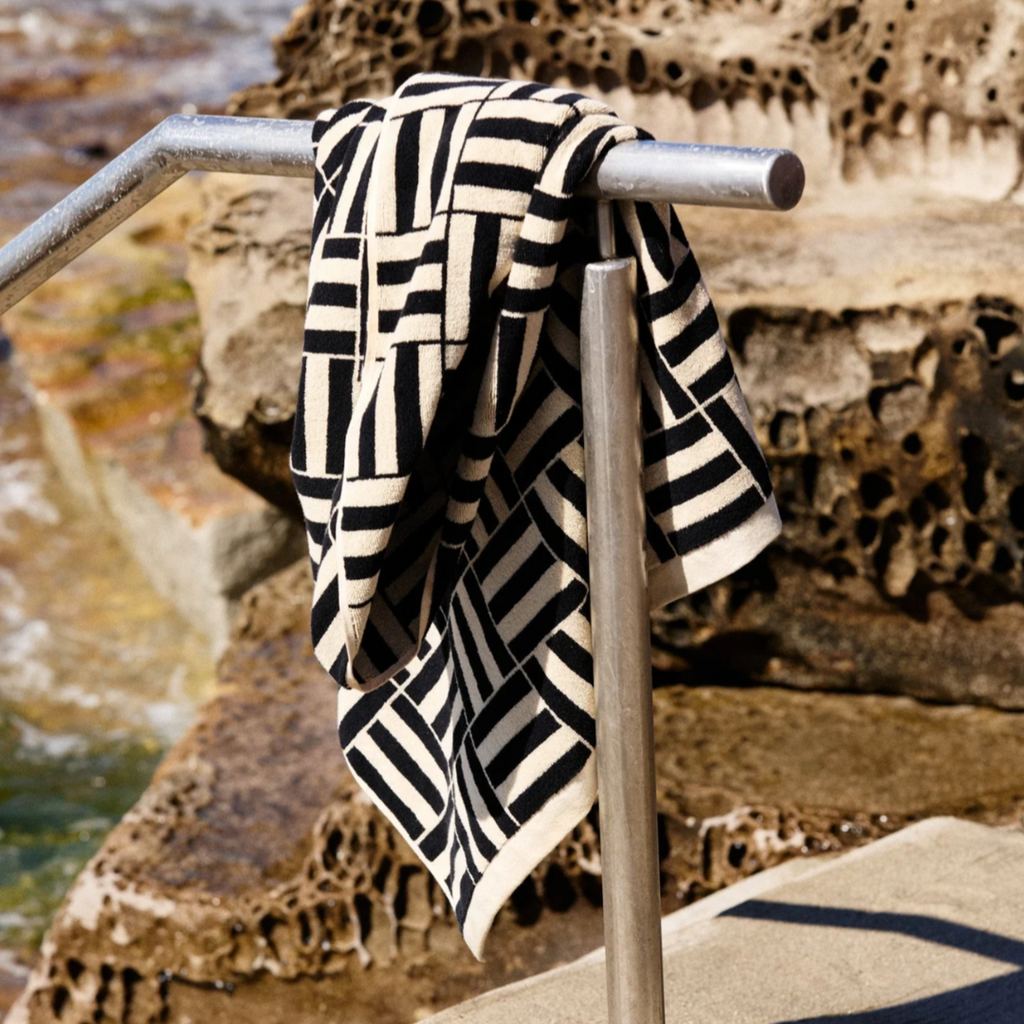 Defined by a geometric weave print, the Willis Pool Towel is inspired by the rhythmic repetition seen in Art Deco tiling. Crafted from 100% organic cotton, the Willis is luxuriously soft. Evoke a sense of modernity oceanside or in the bathroom.