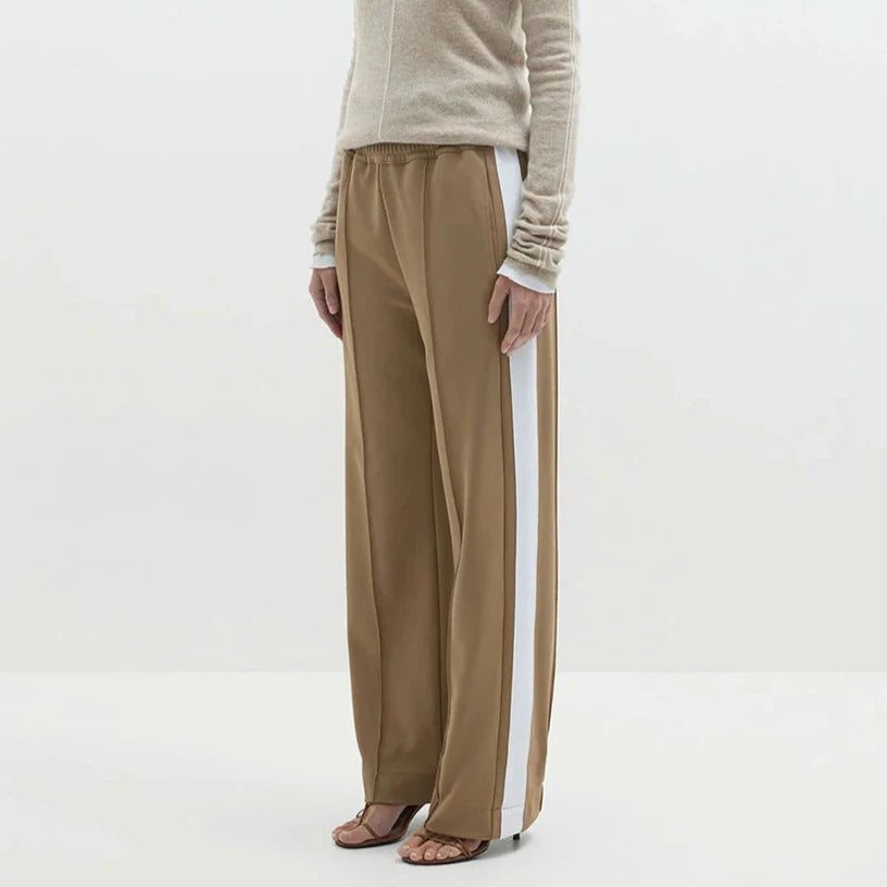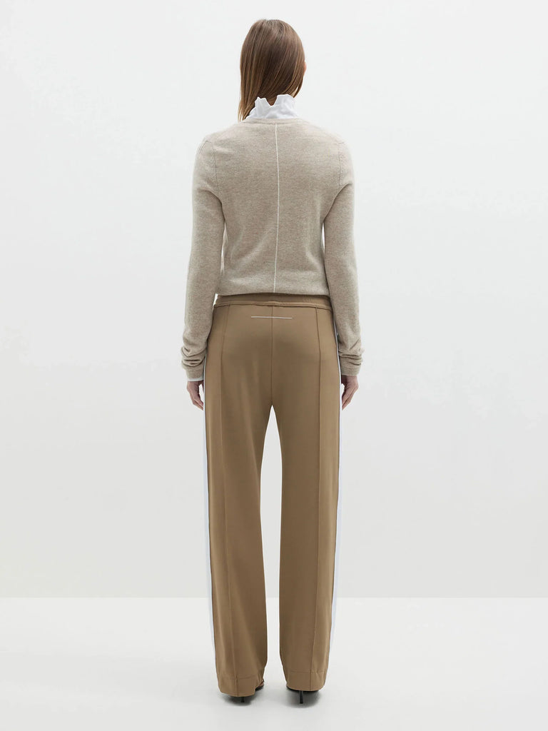 TWILL STRIPE DETAIL PANT - TAN/WHITE