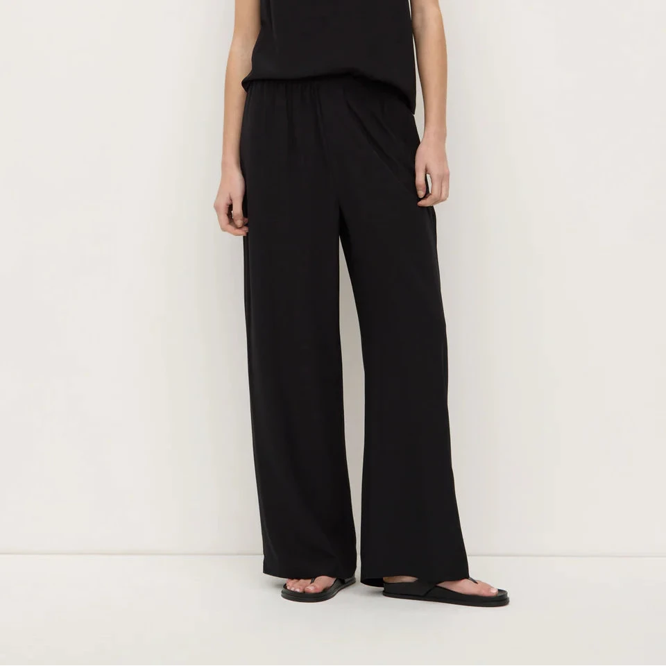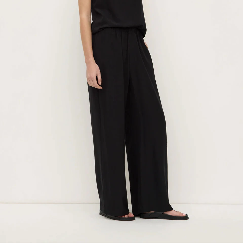 Relaxed, straight leg pant crafted from a lightweight silk. Features side pockets and an elasticated waistband for added comfort and ease.