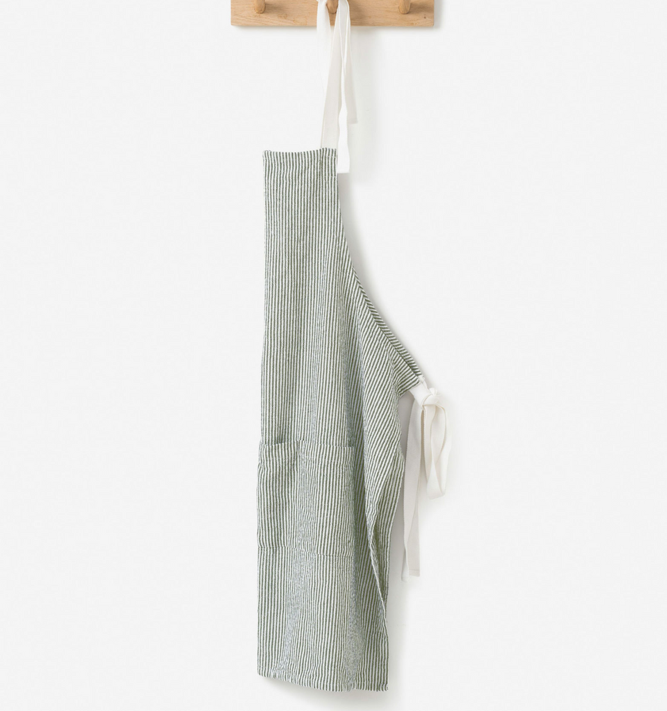 STRIPE WASHED COTTON APRON - OLIVE