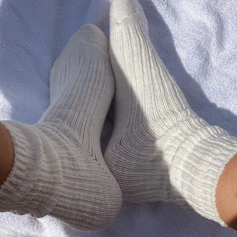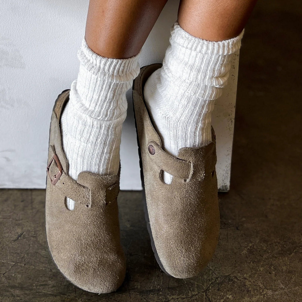 Chunky, scrunchy, thick cotton blend socks! Perfect match with your favorite clogs, slides or sandals for your cute summer outfit!