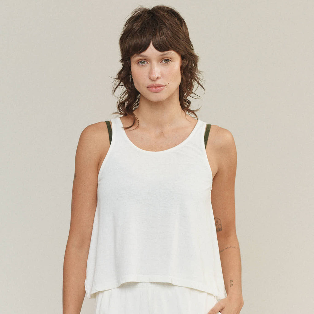 A slightly boxy fit and lightweight hemp blend create a swingy drape on this summer staple. Airy and soft, this tank pairs well with everything. If you can't bear to part with it when the temps drop, layer it under your favorite jacket.