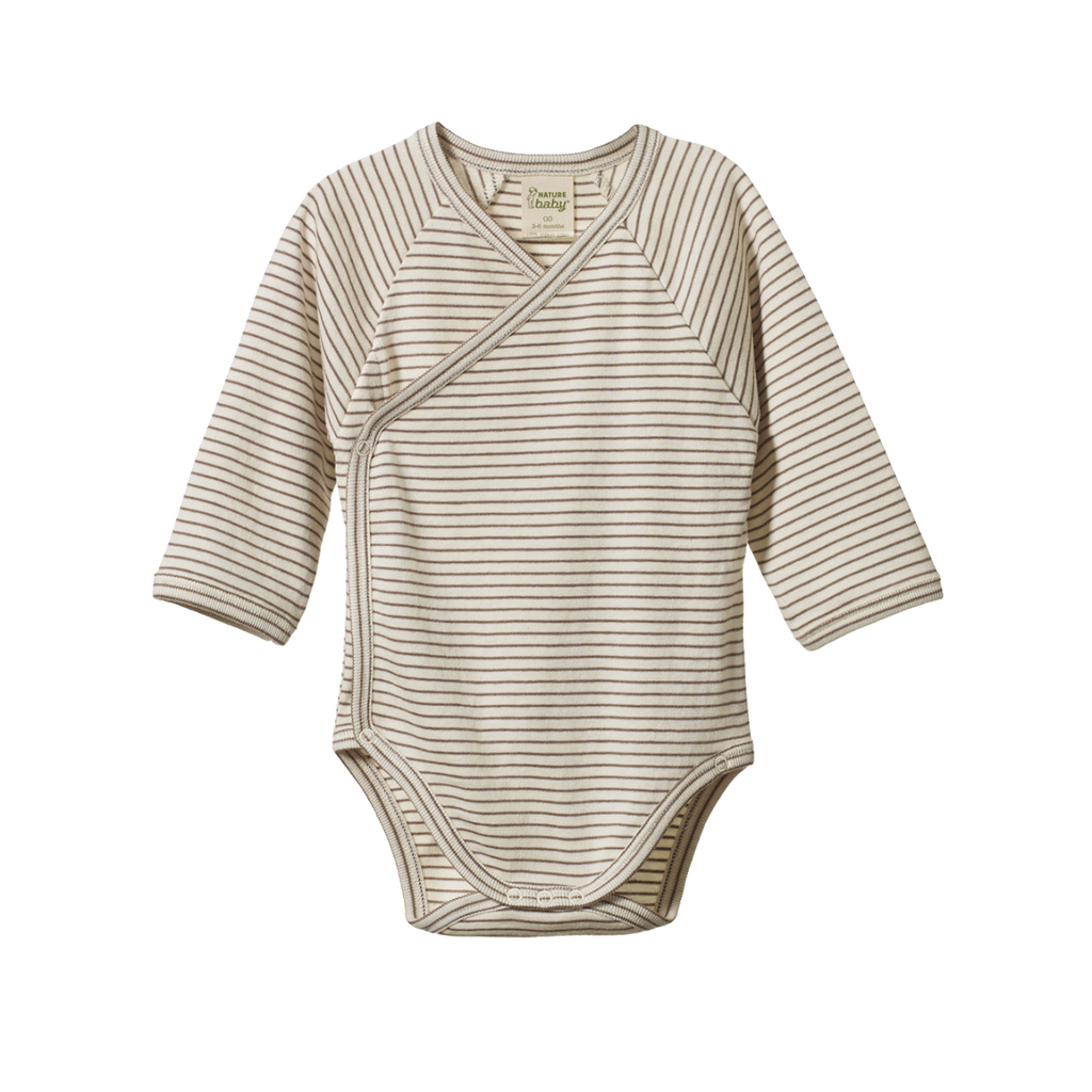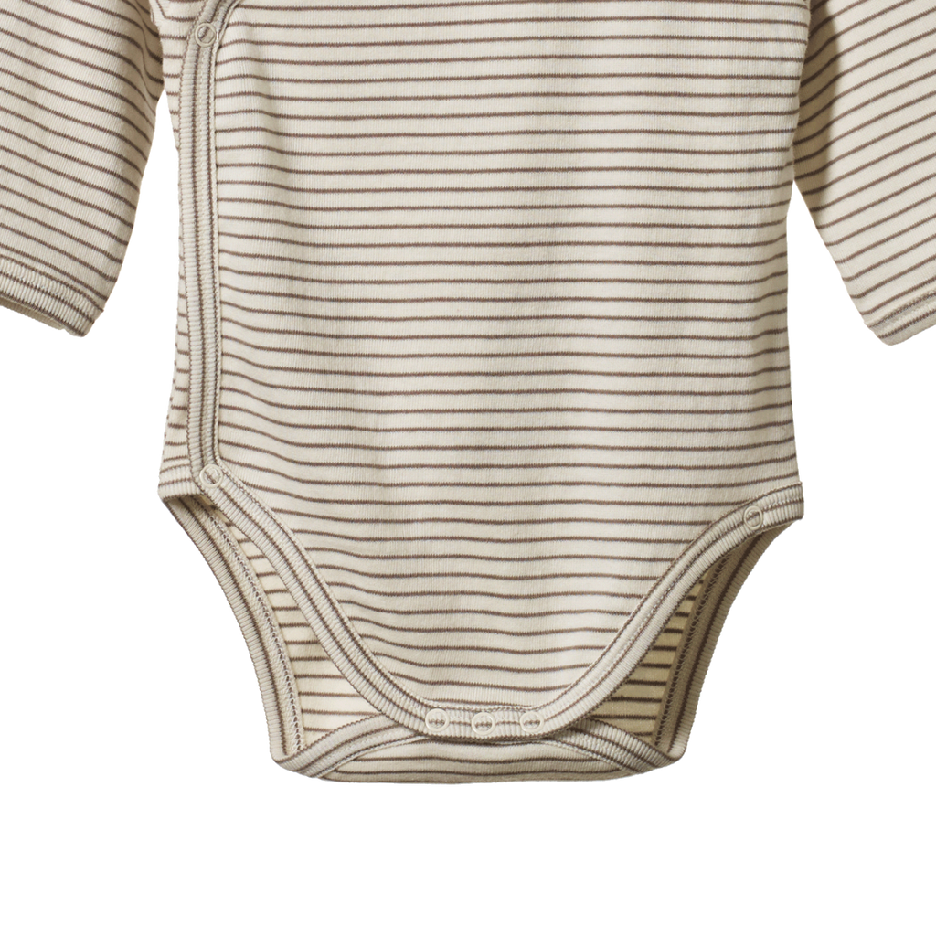 LONG SLEEVE KIMONO BODYSUIT - MUSHROOM PINSTRIPE