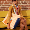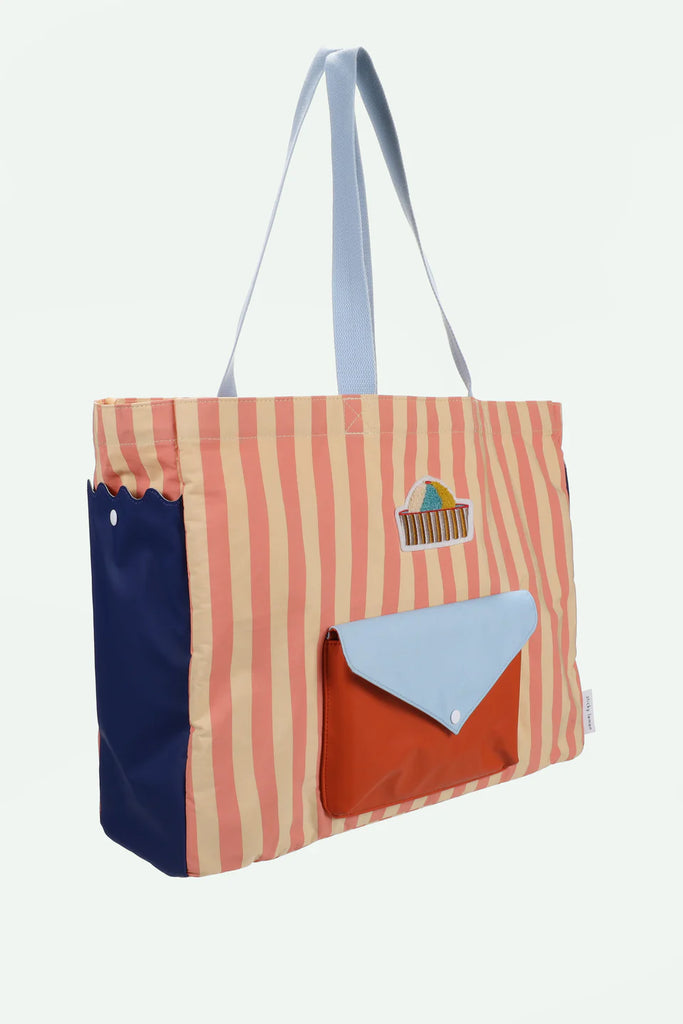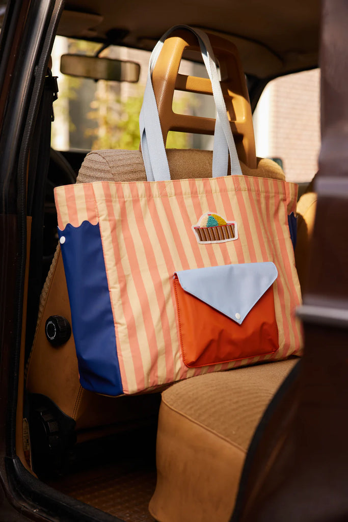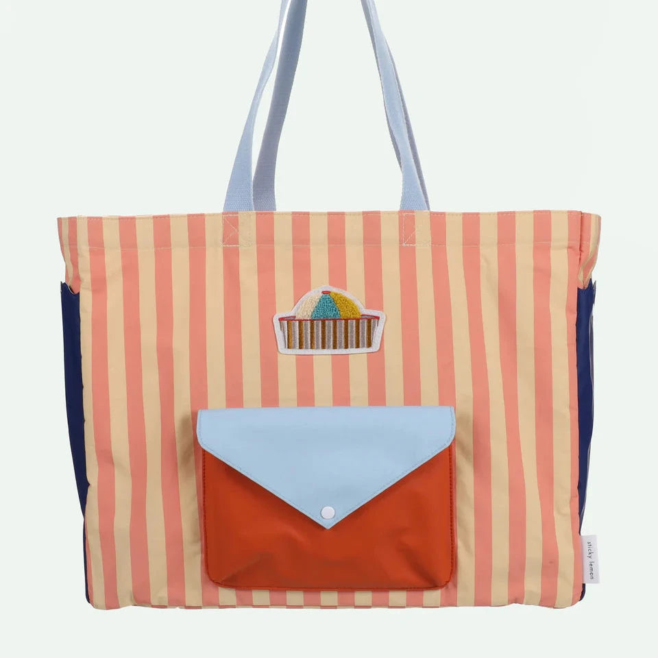 Going to the market or even the beach will be a breeze with this big shopper. The stripes and colours instantly make it stand out! Extra pockets on the front and on both sides makes sure there is enough room for all your things. And check out the patch on the front!
