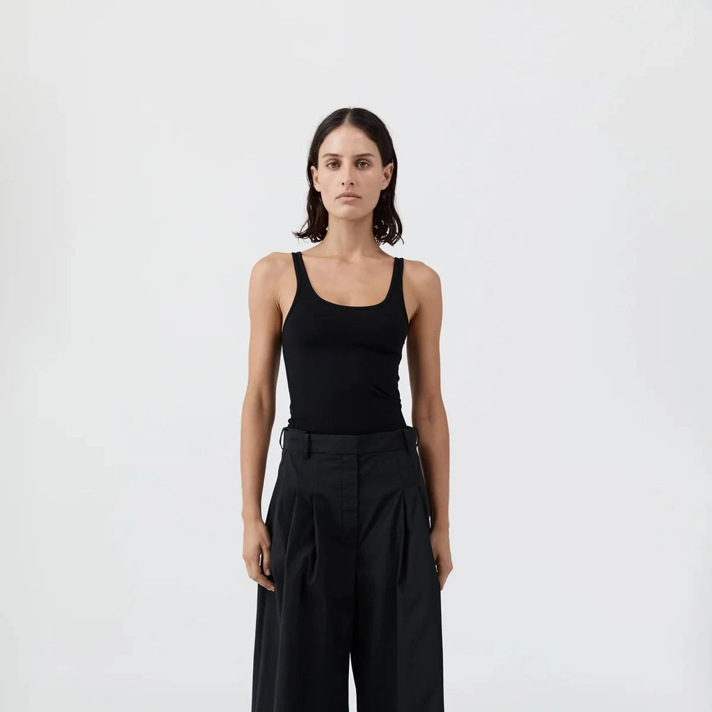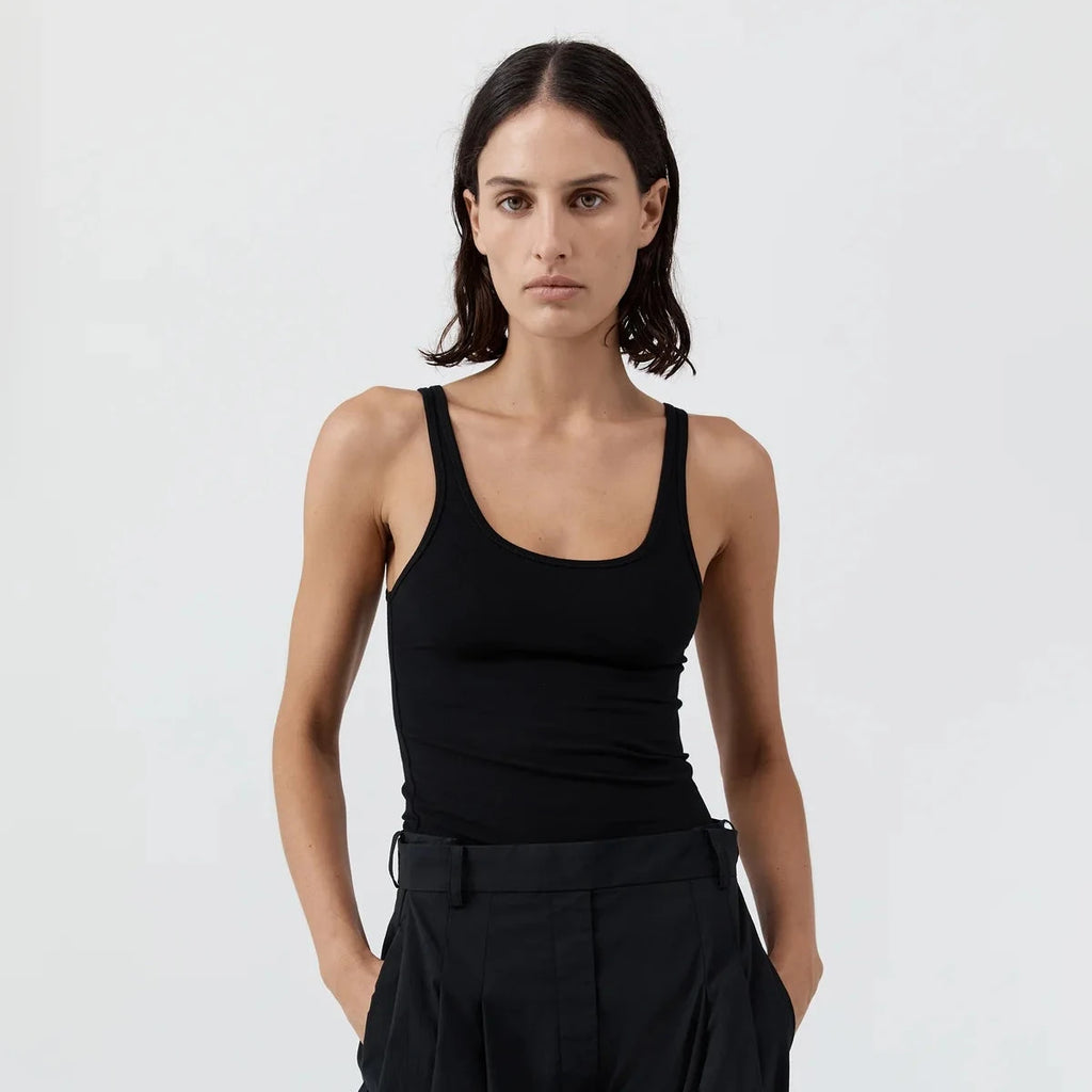 SOFT JERSEY SLIM SCOOP TANK - JET BLACK