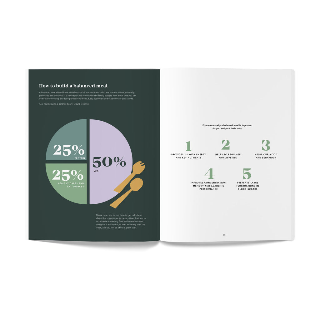 An incredible hardcover book with over 400 pages of evidence-based insights, including over 100 family-friendly recipes to have the whole family eating together (because who has time to make more than one meal!).