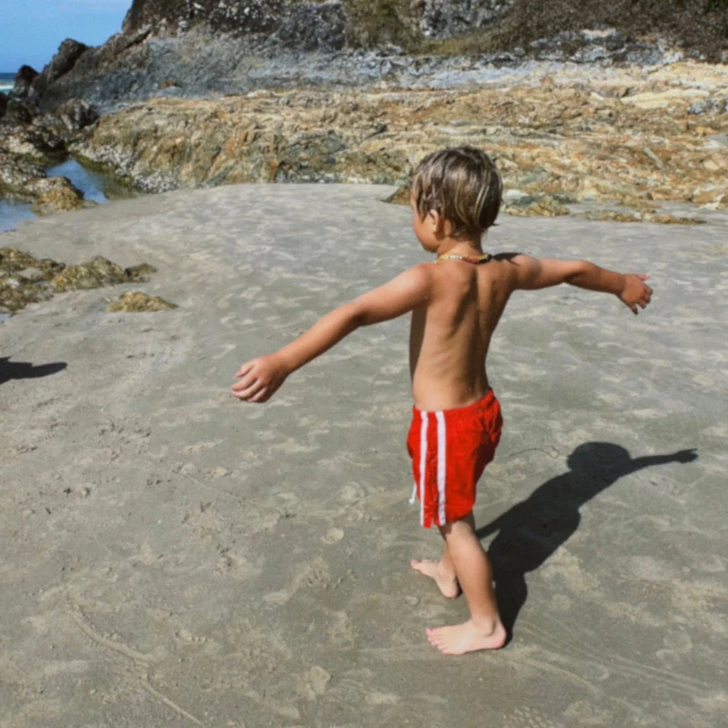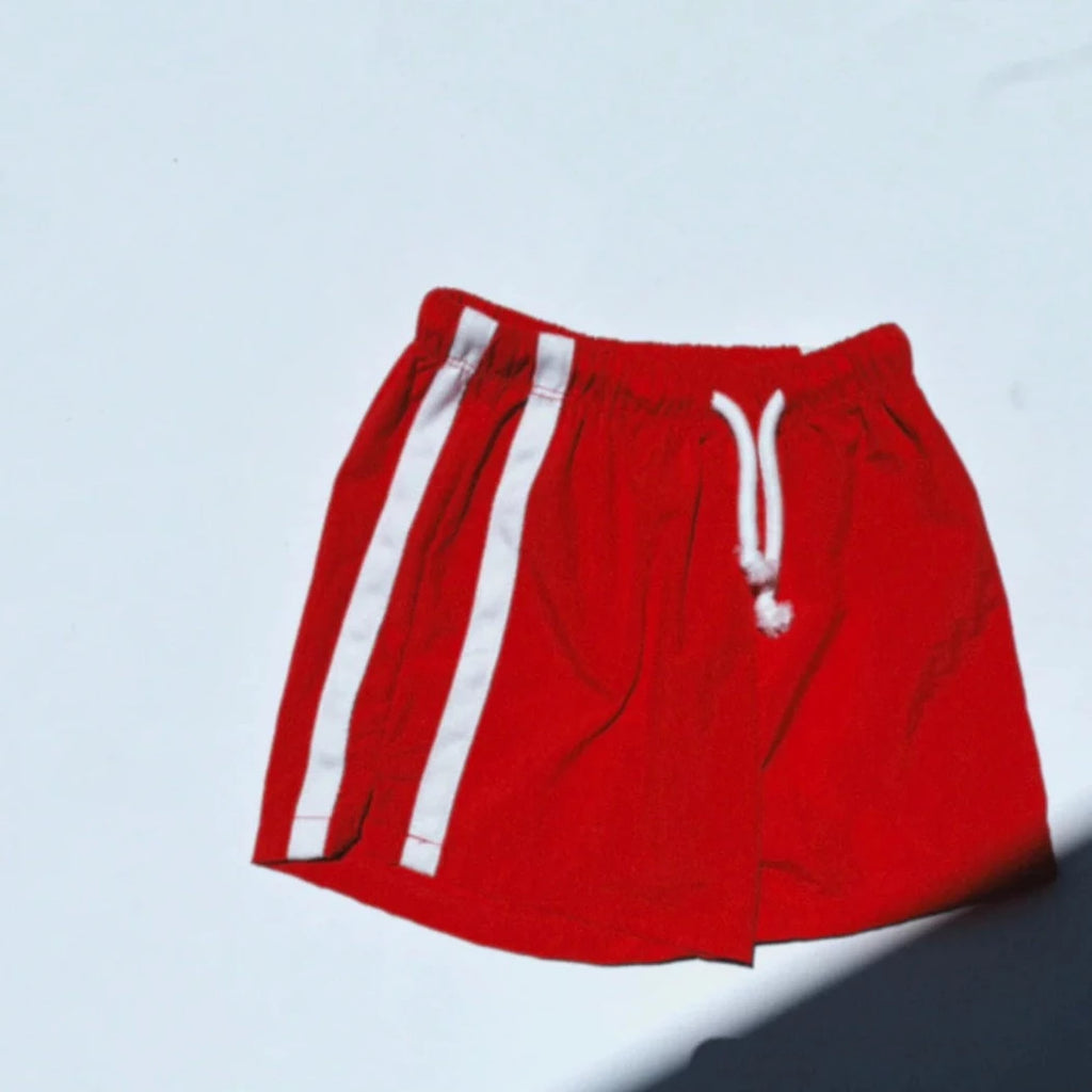TWIN STRIPE SWIM SHORT - ROSSO