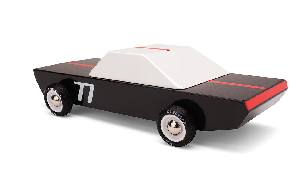 Muted, discreet grey with a hairline bright red stripe.  The wolf in sheep’s clothing, lucky number 77 will be the star on the imaginary circuit.  Not for children under 3 years of age.