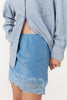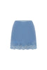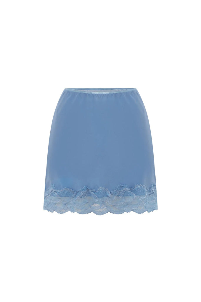 Our cult-favourite Marina Silk Mini Skirt in Cornflower blue. Crafted from a blend of silk crepe and nylon lace, this high-waisted, bias-cut skirt heros a delicate lace hem. Discover why we can't get enough of this best-selling mini