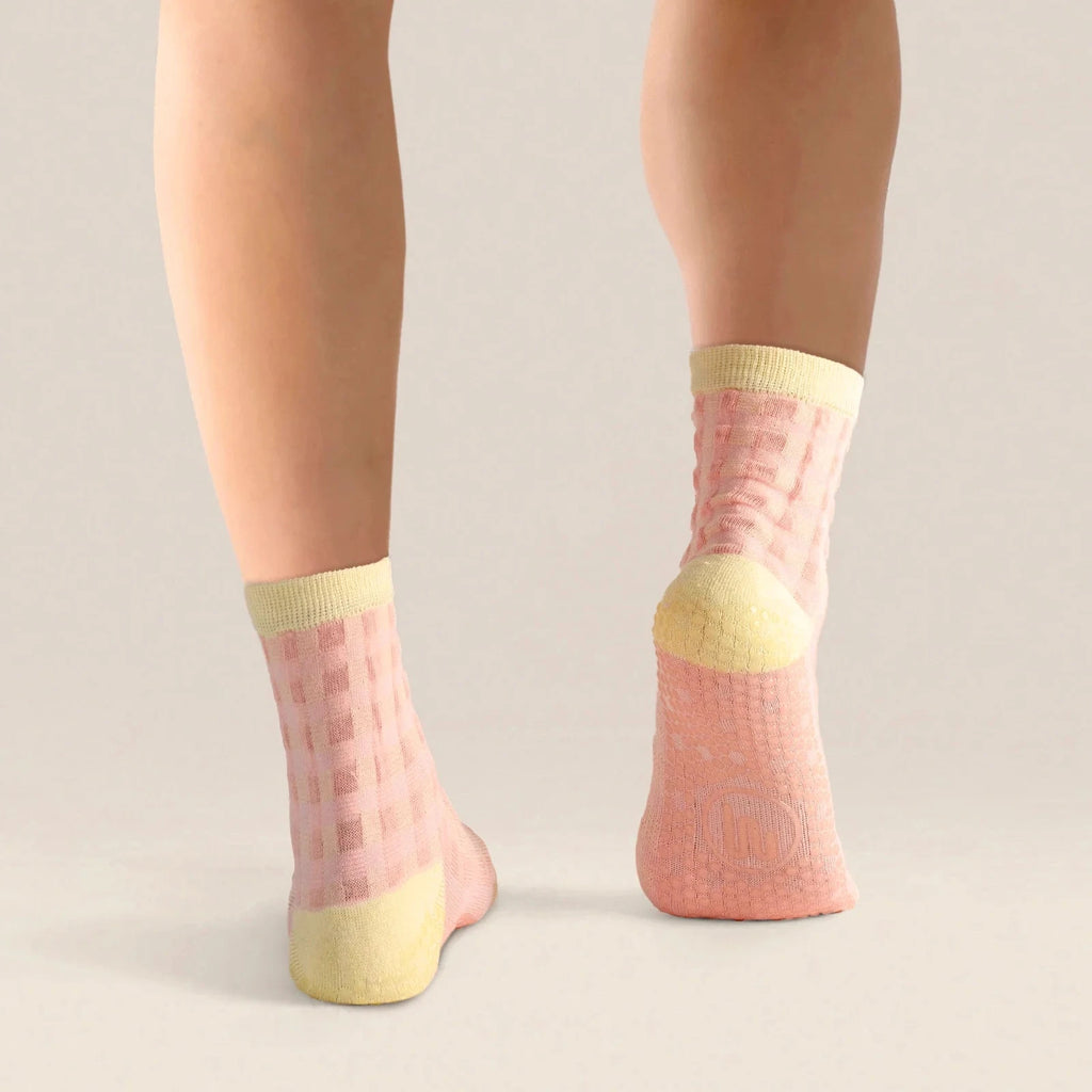 CREW NON SLIP GRIP SOCKS - SUGAR PINK GINGHAM