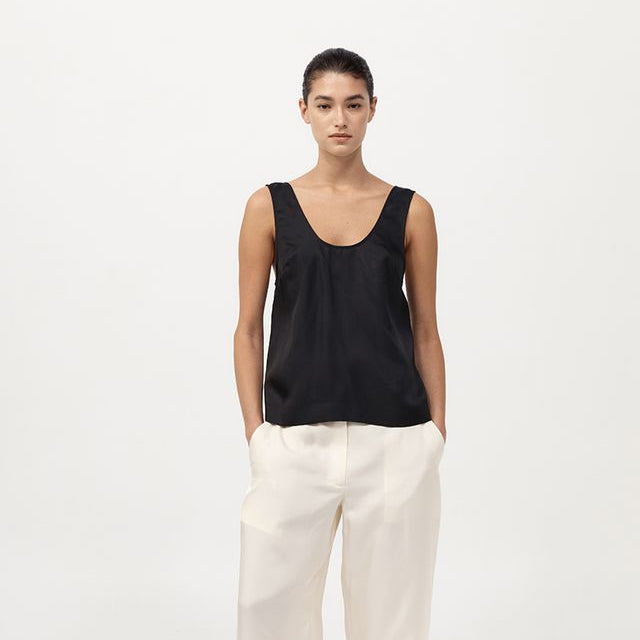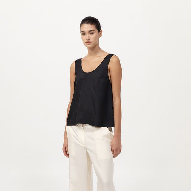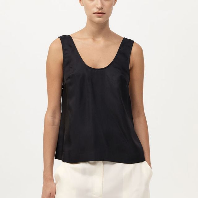 The Jordan Button Up Top is a minimal silhouette elevated by its subtle detailing. Crafted in silk twill, it features a low scoop neckline and a buttoned split at the back for an athletic touch. The Jordan Button Up Top is a refined piece for elevated day-to-evening wear.