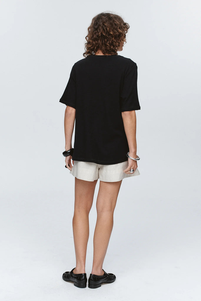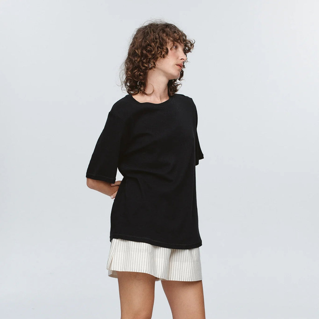 Oversized short-sleeve tee constructed from a lightweight cotton / hemp jersey. Designed with a wide cut through the body and extended sleeve length for a relaxed shape. Finished with a classic crew neckline and clean hems.