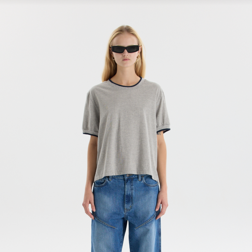 LAYERED NECK T-SHIRT - GREY MARLE/BLUE INK