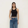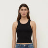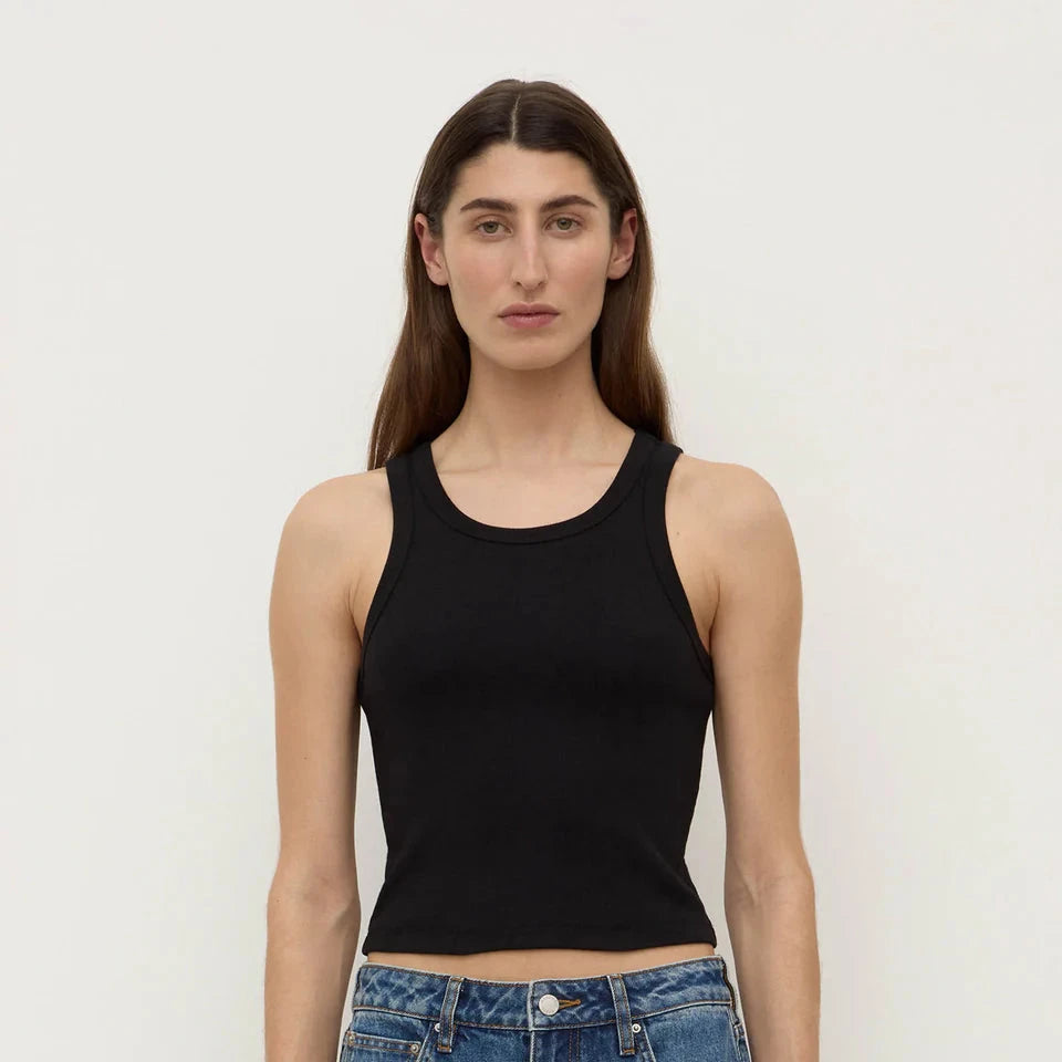 The Lulu Cropped Tank is a soft cotton jersey tank with a high neckline, fitted silhouette, and cropped length.