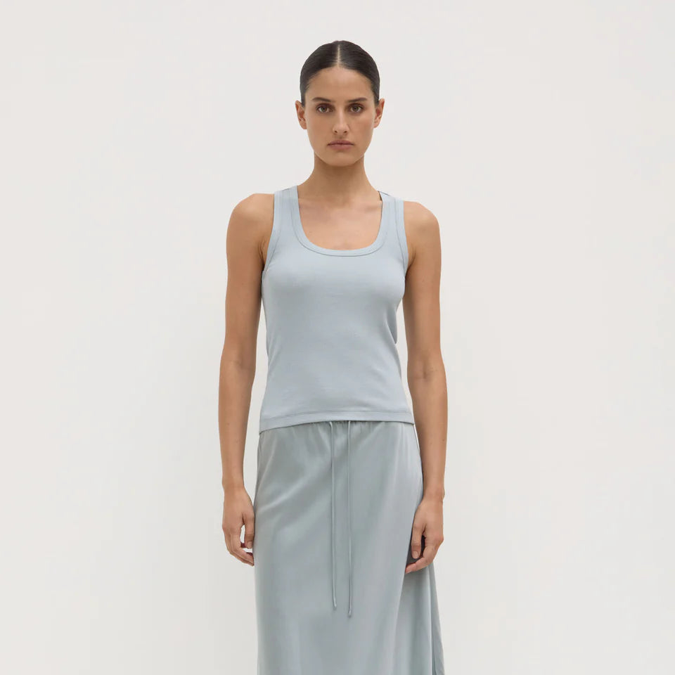 ROBYN SCOOP NECK RIB TANK - CLOUD
