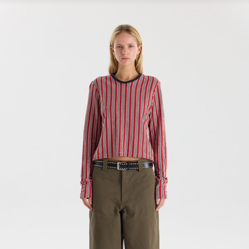 VERTICAL STRIPE LONG SLEEVE TEE - RED/NAVY/NATURAL