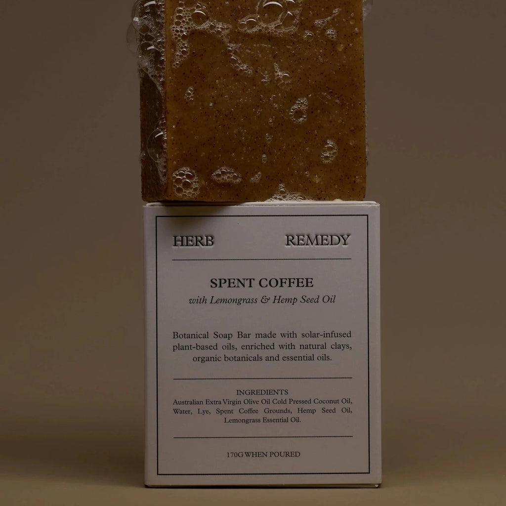 This botanical soap blends spent coffee grounds from local coffee roasters, Lemongrass, and Hemp Seed Oil to create a refreshing and invigorating cleanse for your skin.