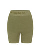 Superfine high-waisted Merino wool seamless knit rib mini short made in our signature seamless fabrication offering mild compression for support and breathability.The style features a double layer waistband with jacquard Nagnata logo on front and back waistband. Crafted in our signature Nagnata rib, these shorts include contrast jacquard stripe placement artwork.