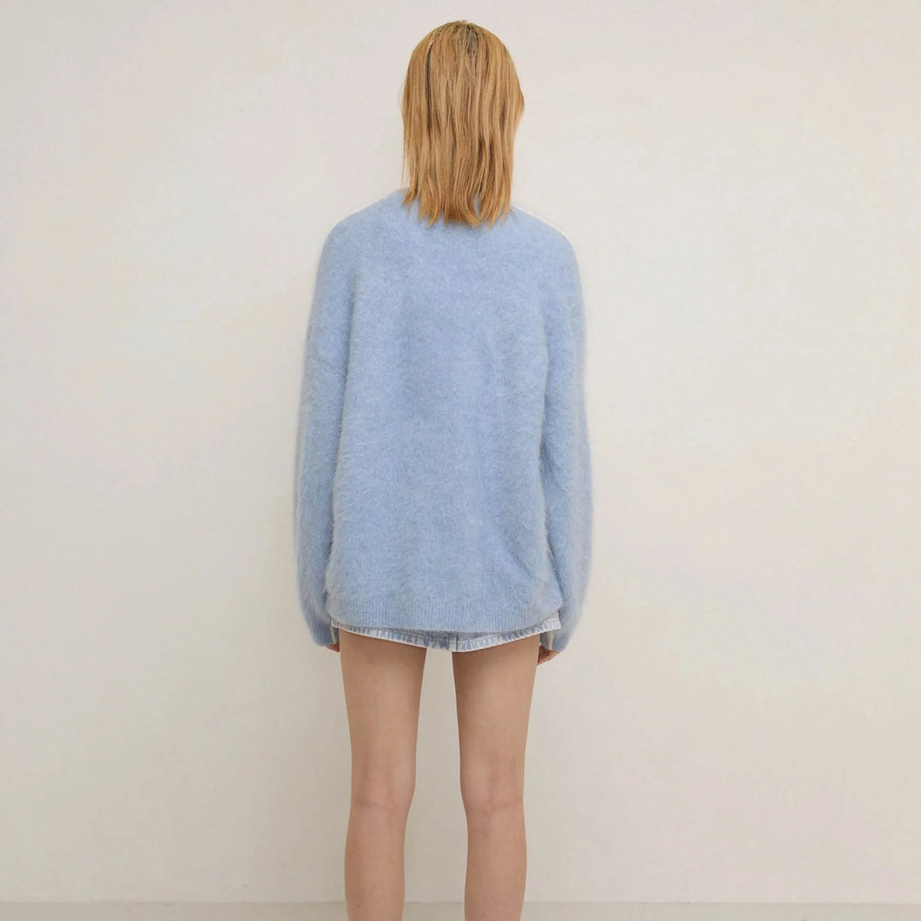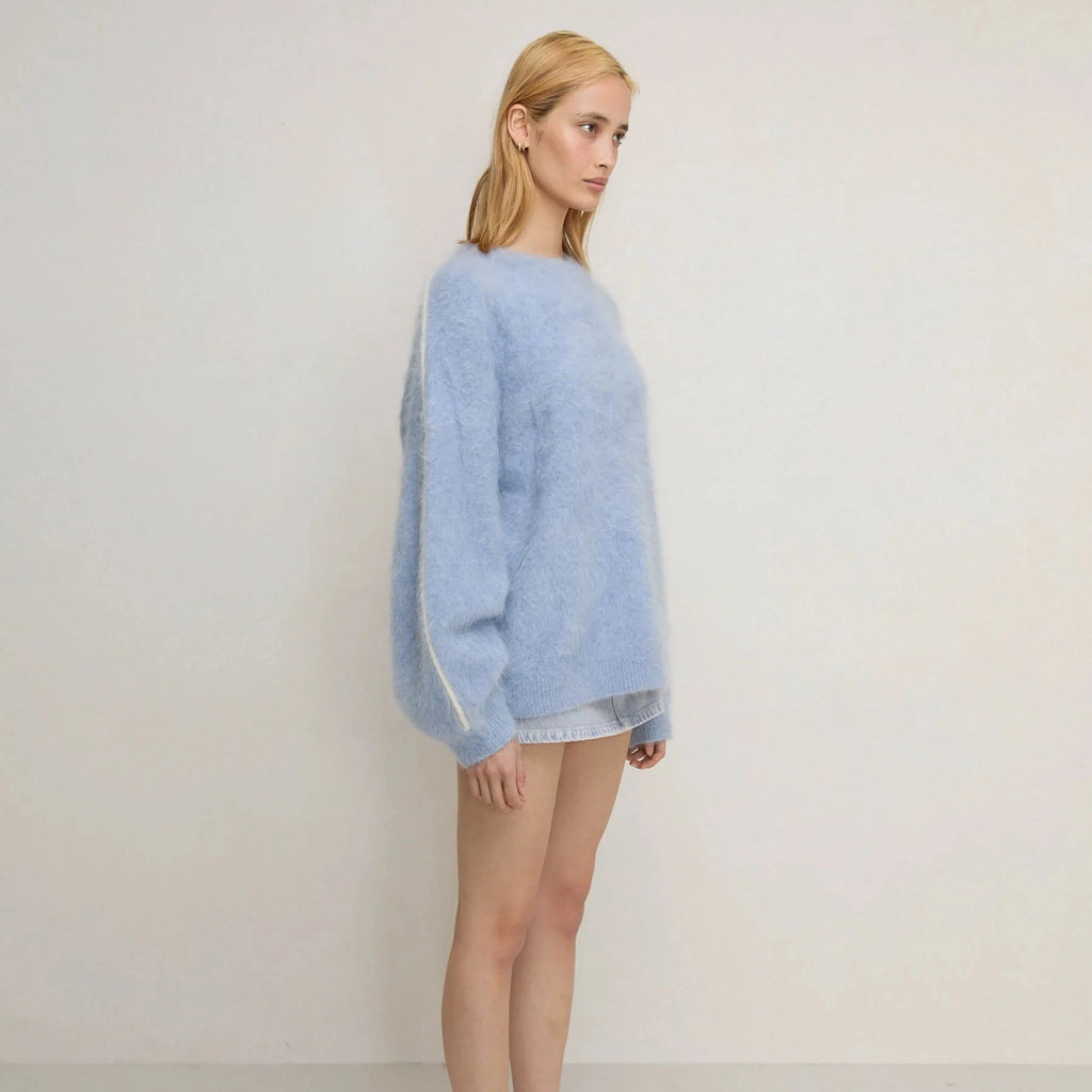 Our fully-fashioned Alpaca wool sweater is designed with a relaxed silhouette featuring a contrast highlight detail at the side seam for added visual interest. The luxurious brushed alpaca blend has an ultra-soft feel and layers perfectly over any look. Crafted with sculptural sleeves elevating the standard knit sweater, this style comes in 4 sizes XS, S, M, and L.