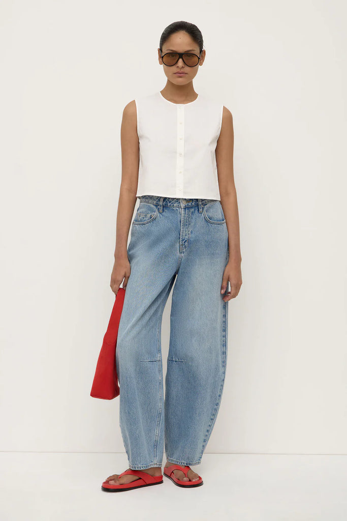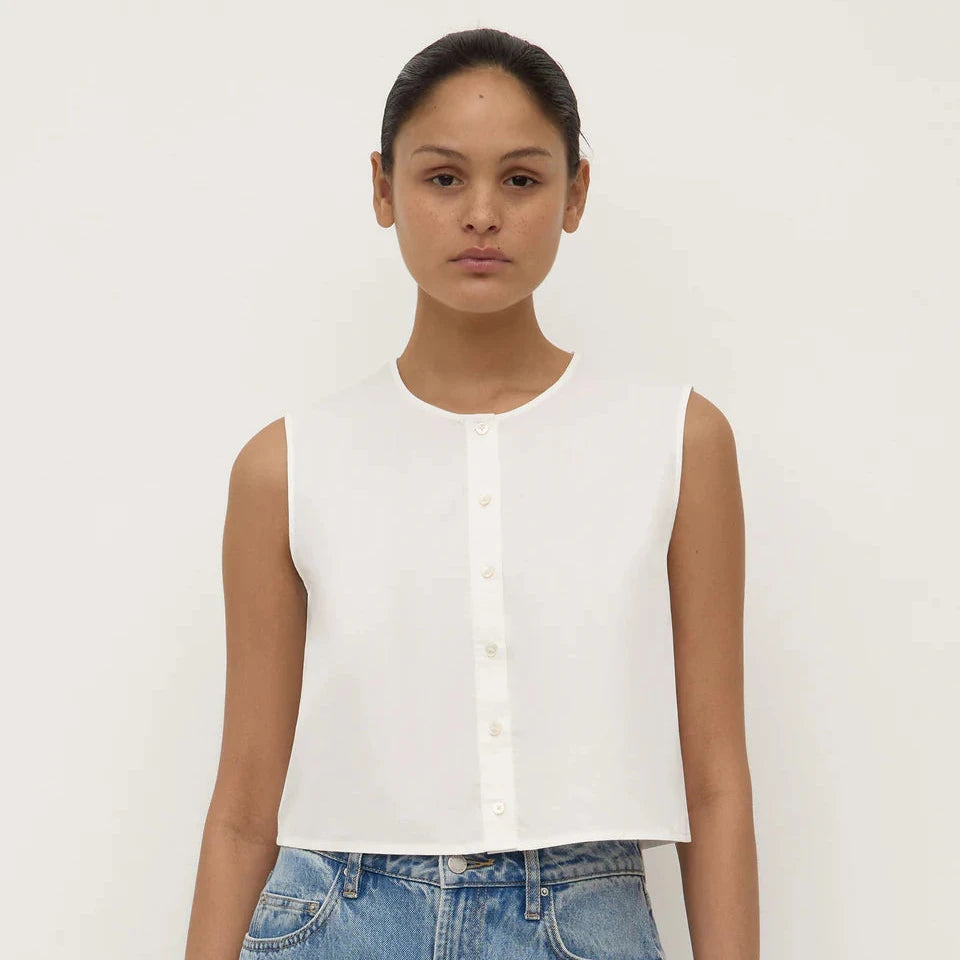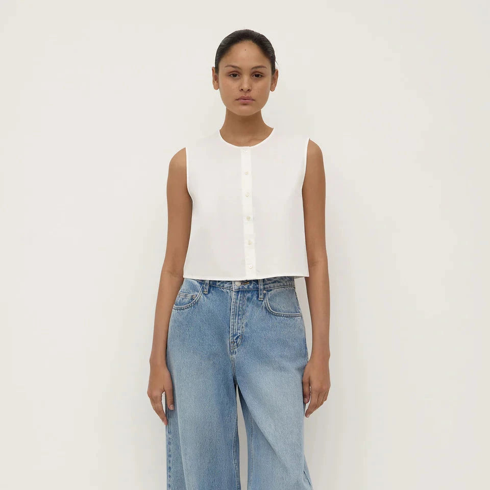 CHERRI BUTTON FRONT TOP - WHITE