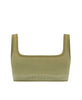Superfine Merino wool seamless knit scoop-neck bralet in our premium rib fabrication. Offers mid compression and lined with a self knit layer for support. This style features a contrast hem band with a minimal jacquard logo at the back. Designed with highly breathable natural fibres for a super-soft second-skin feel against the body.