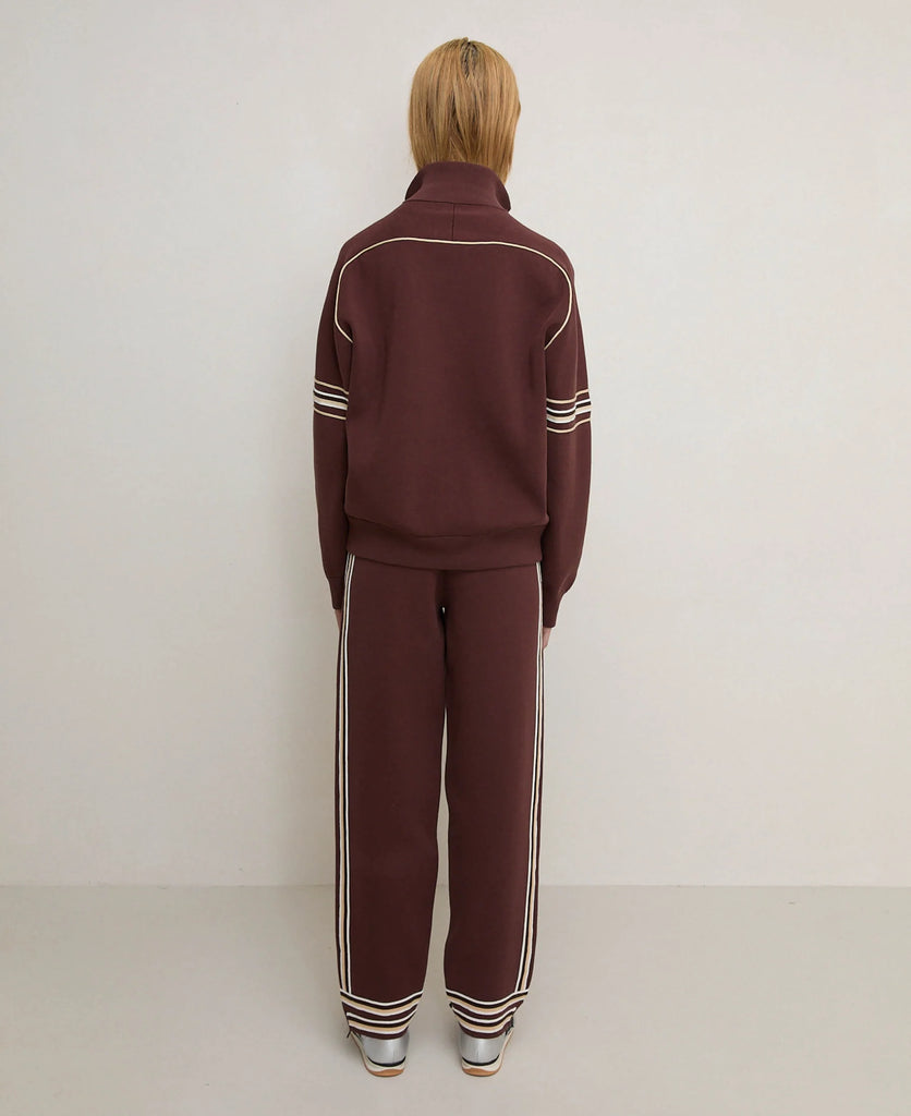 The Organic Motley Track Pant is a fresh update on the original Motley Track Pant, a coveted Nagnata SAMA genderless staple. The relaxed, high-rise style features an encased elastic jacquard waistband and a custom woven tape design with back pocket. Now made with an improved heavy-weight bird's eye jacquard fabric retaining shape and elevate your everyday studio to street style.