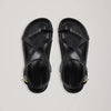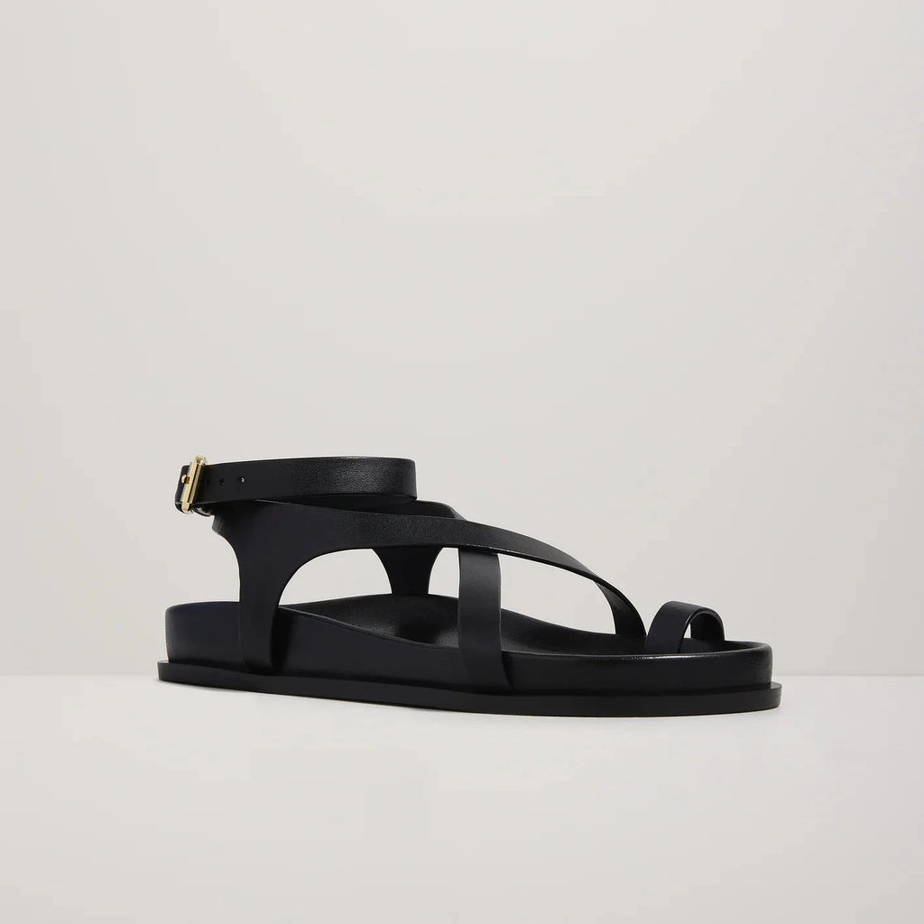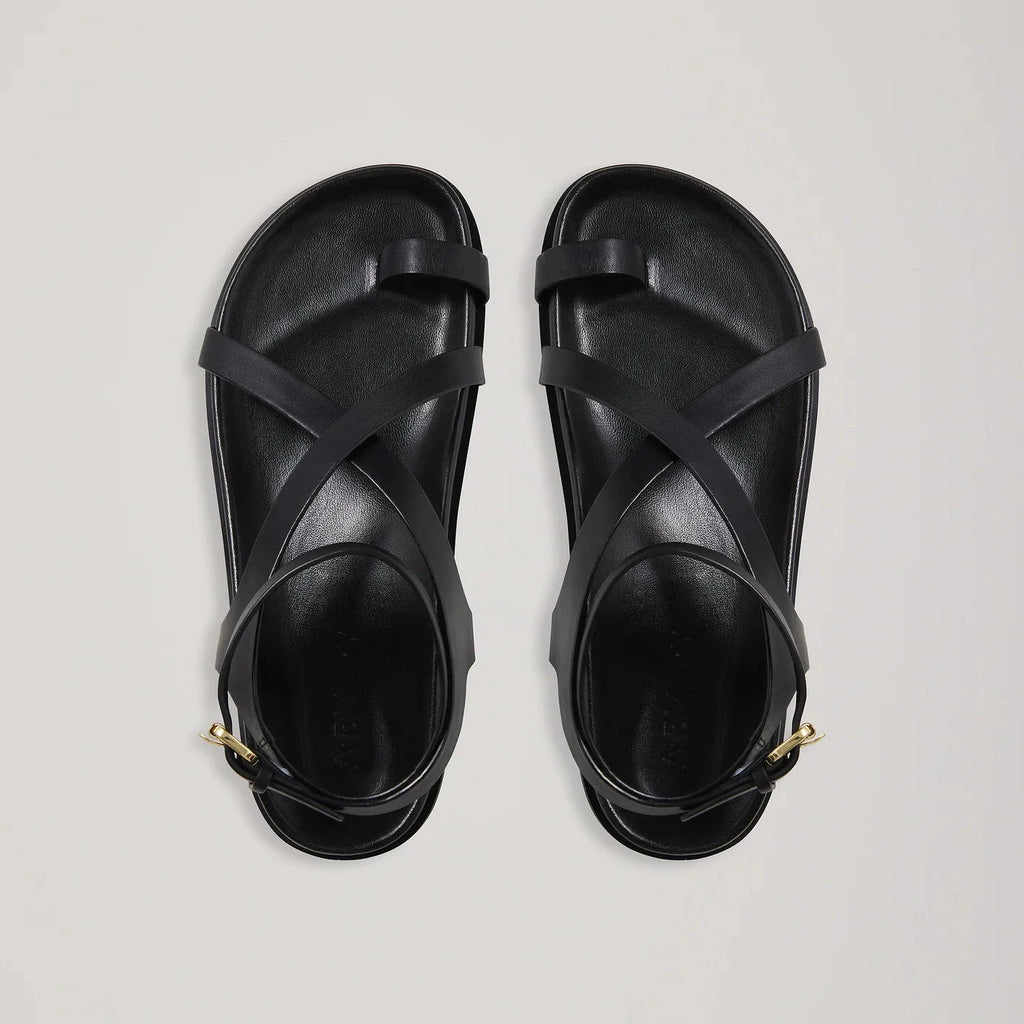 An iteration of our most popular style, the Jalen Slim sits atop our moulded footbed, featuring a toe hold and two criss-cross straps that encase the foot and finish with a soft gold buckle around the ankle.