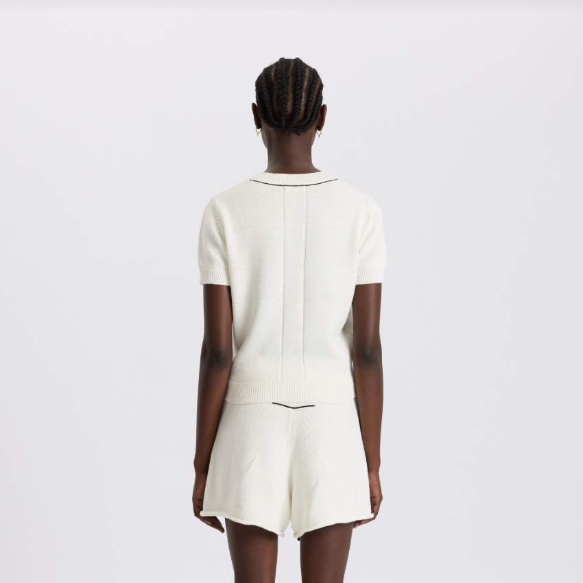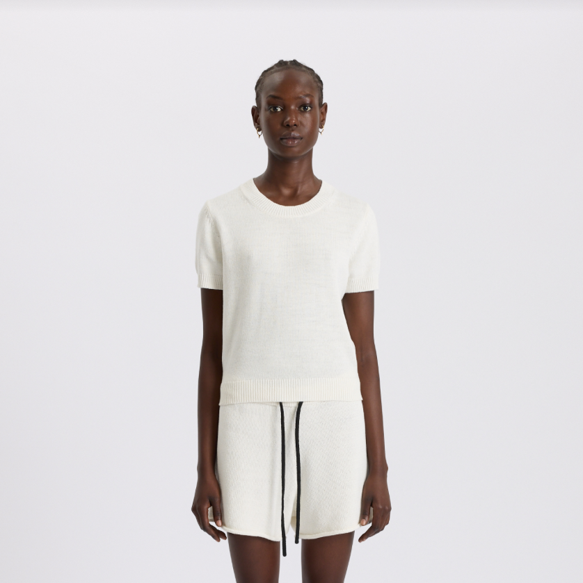 COTTON LINEN SLIM SHORT SLEEVE KNIT - WHITE