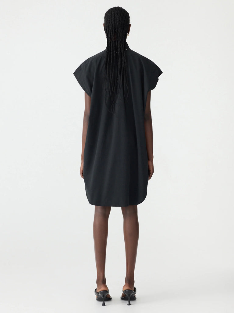 CRUSHED COTTON SLEEVELESS DRESS - BLACK