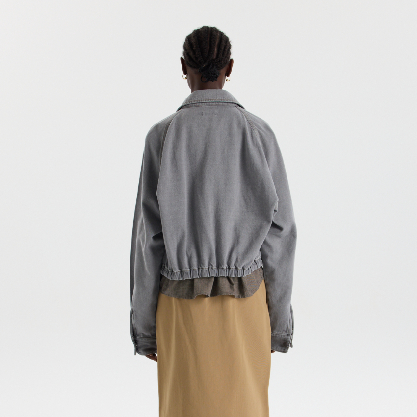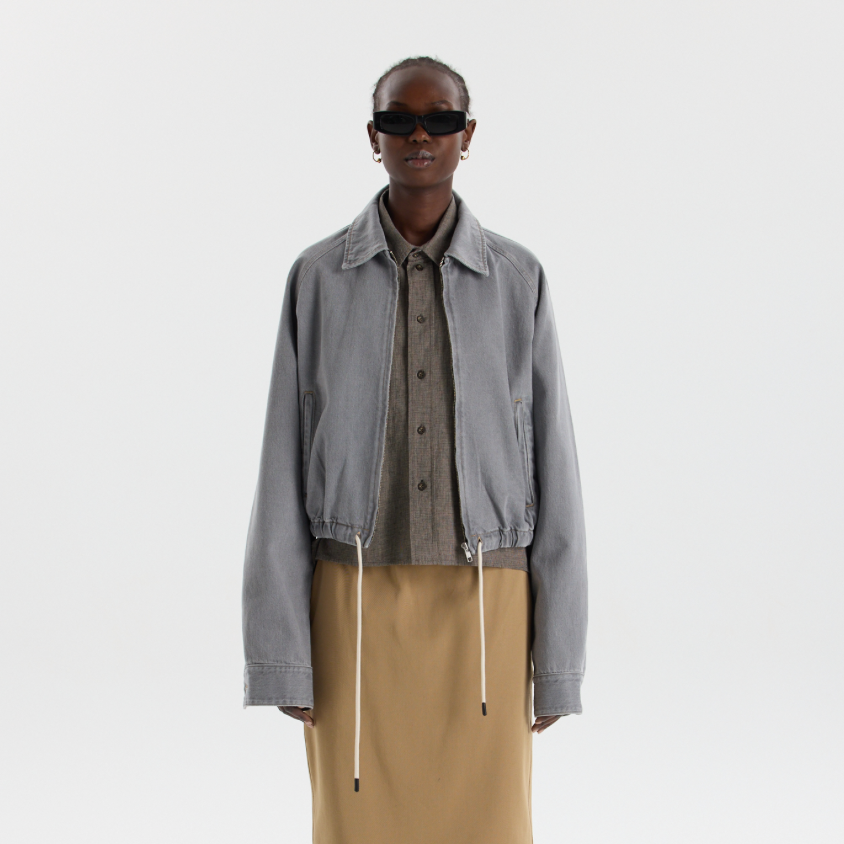 DRAWSTRING DETAIL DENIM JACKET - WASHED GREY