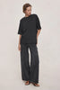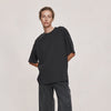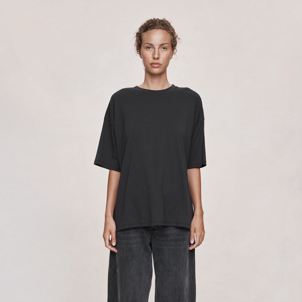 This oversized T-shirt has a lightweight hand feel. Designed with a wide, relaxed shape, it features dropped shoulders and extended sleeves that fall to the elbow. The crew neckline is finished with a ribbed bind for structure, while the straight hem offers a clean, minimal finish. A versatile essential intended for effortless, everyday wear.
