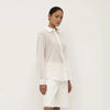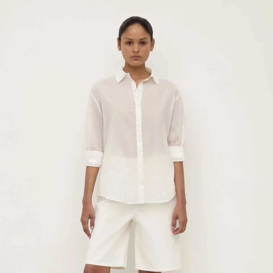 Made for layering, this shirt is crafted from a lightweight semi-sheer cotton. Features a shaped hemline with button cuffs that can be styled rolled for a more relaxed look.