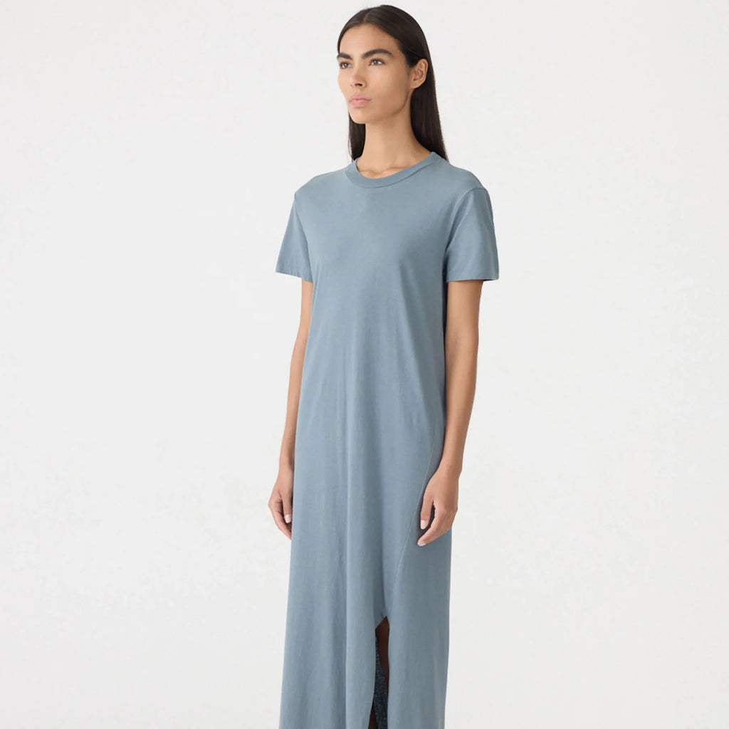 LONGERLINE T-SHIRT DRESS - STEEL BLUE