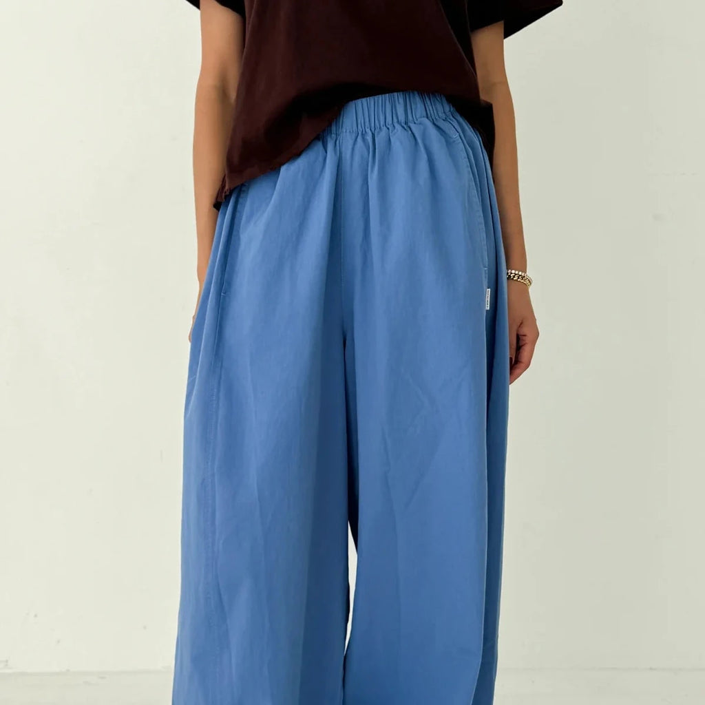 Billowy pants made to move with you throughout the day. Crafted from a light yet durable and elevated cotton, they're the kind of pair you can wear anywhere, from casual moments to polished looks. Designed with an elastic waist and side pockets, their unique leg shape sets them apart. A third side panel adds extra volume, creating a sculptural silhouette that’s relaxed, airy, and full of movement