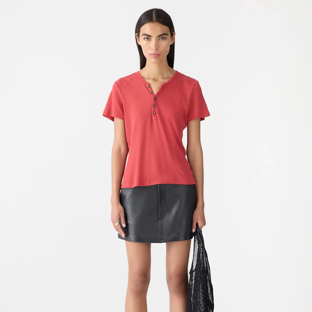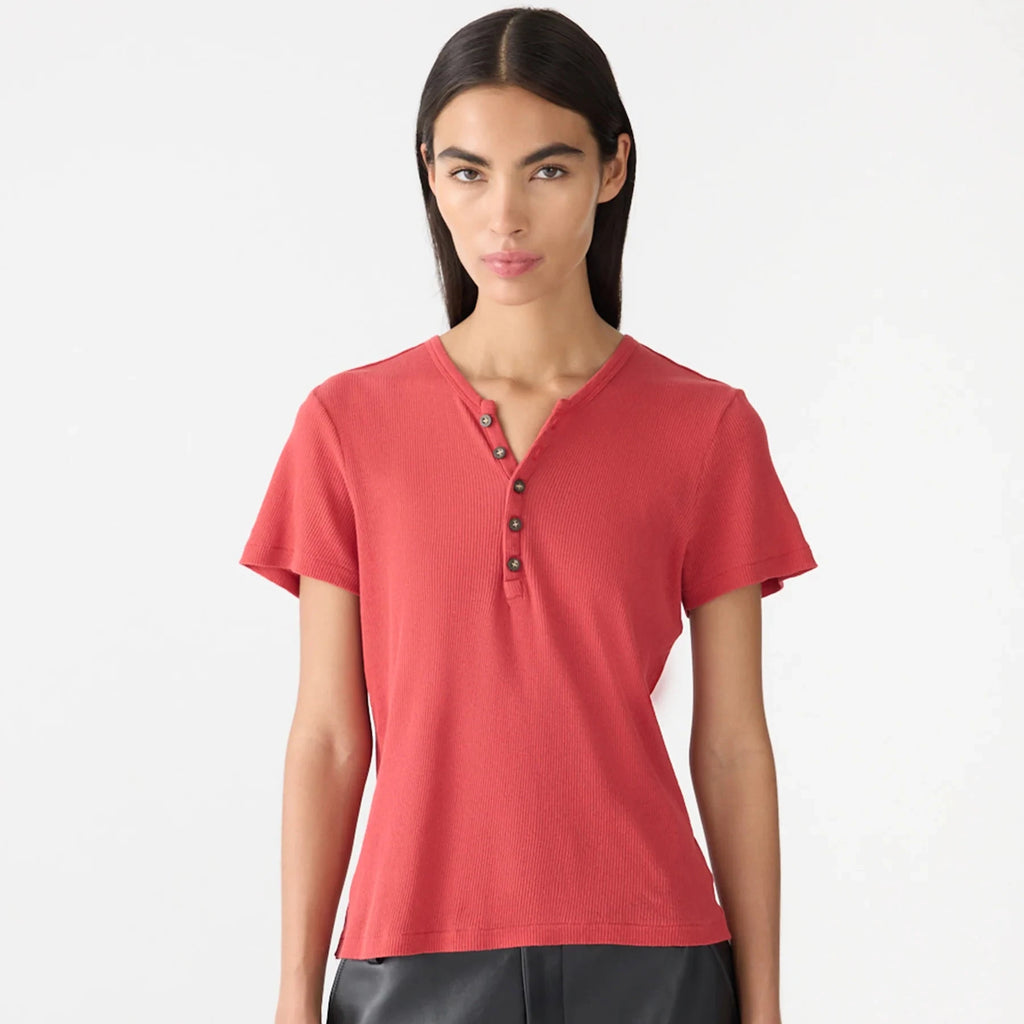 SHEER RIB PLACKET T-SHIRT - HERITAGE RED