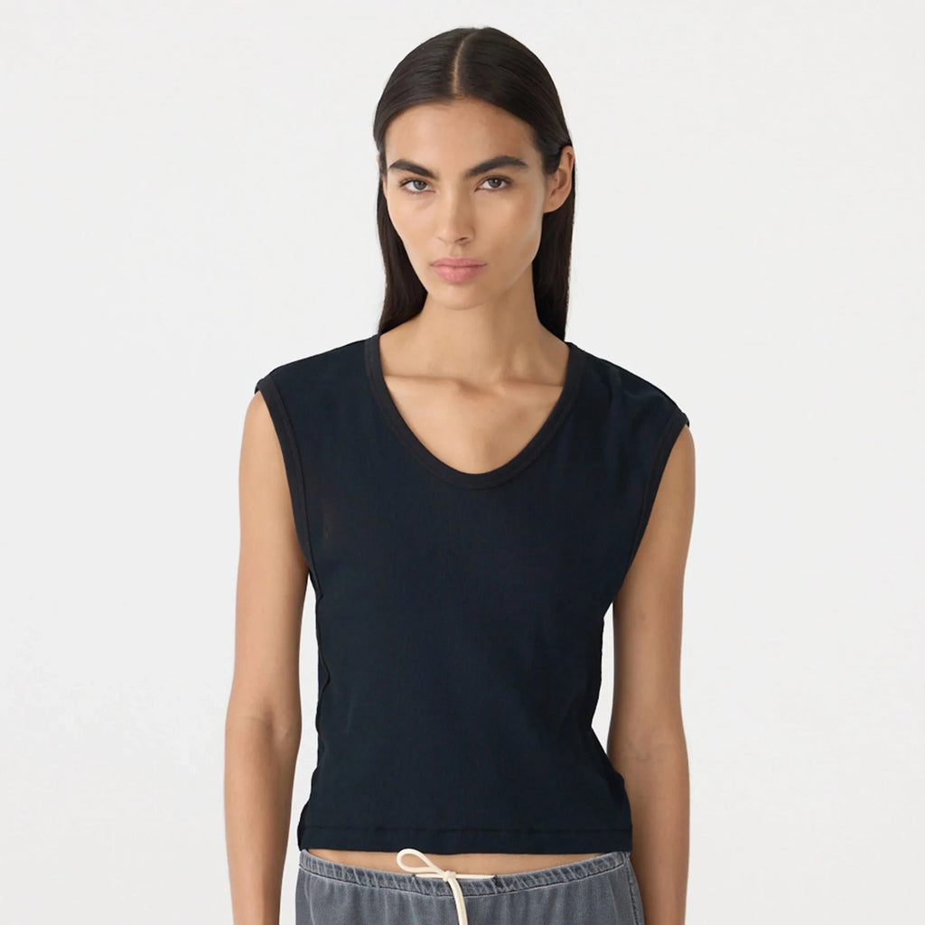 A seasonal essential, the Sheer Rib V-Neck Muscle Tank is crafted from an Australian organic sheer rib for a lightweight, breathable feel. Designed in a muscle tank silhouette, it features a ribbed neck and armholes with a clean finished hem.