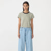 A high-rotation essential, the Stripe Raw Edge Baby T-Shirt is crafted from a lightweight recycled cotton jersey in a Japanese stripe. Designed for a slim fit with a cropped silhouette, this signature style features a classic crew neckline and cap sleeves. Finished with a raw edge hem and Bassike’s contrast stitch detailing at the back neck.