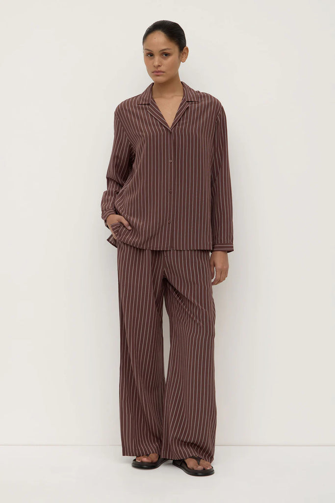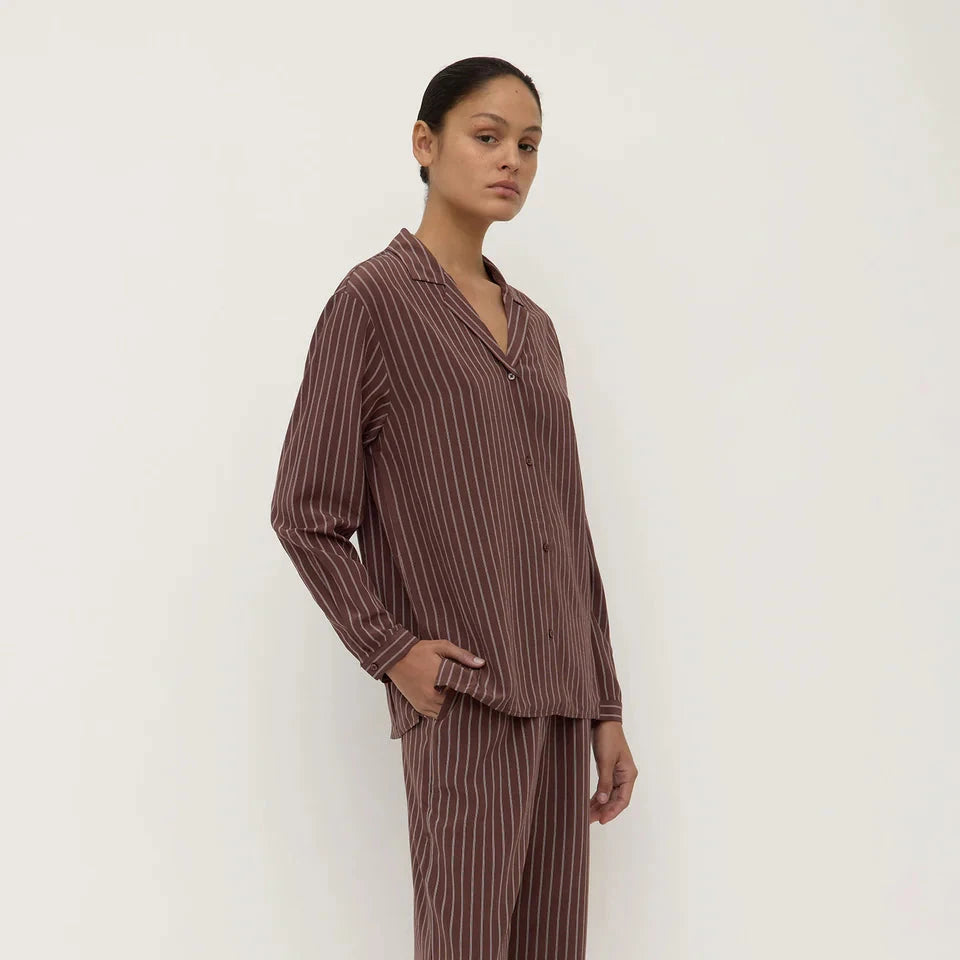 ZAYLA SILK STRIPE LONG SLEEVE SHIRT - CREAM/ESPRESSO