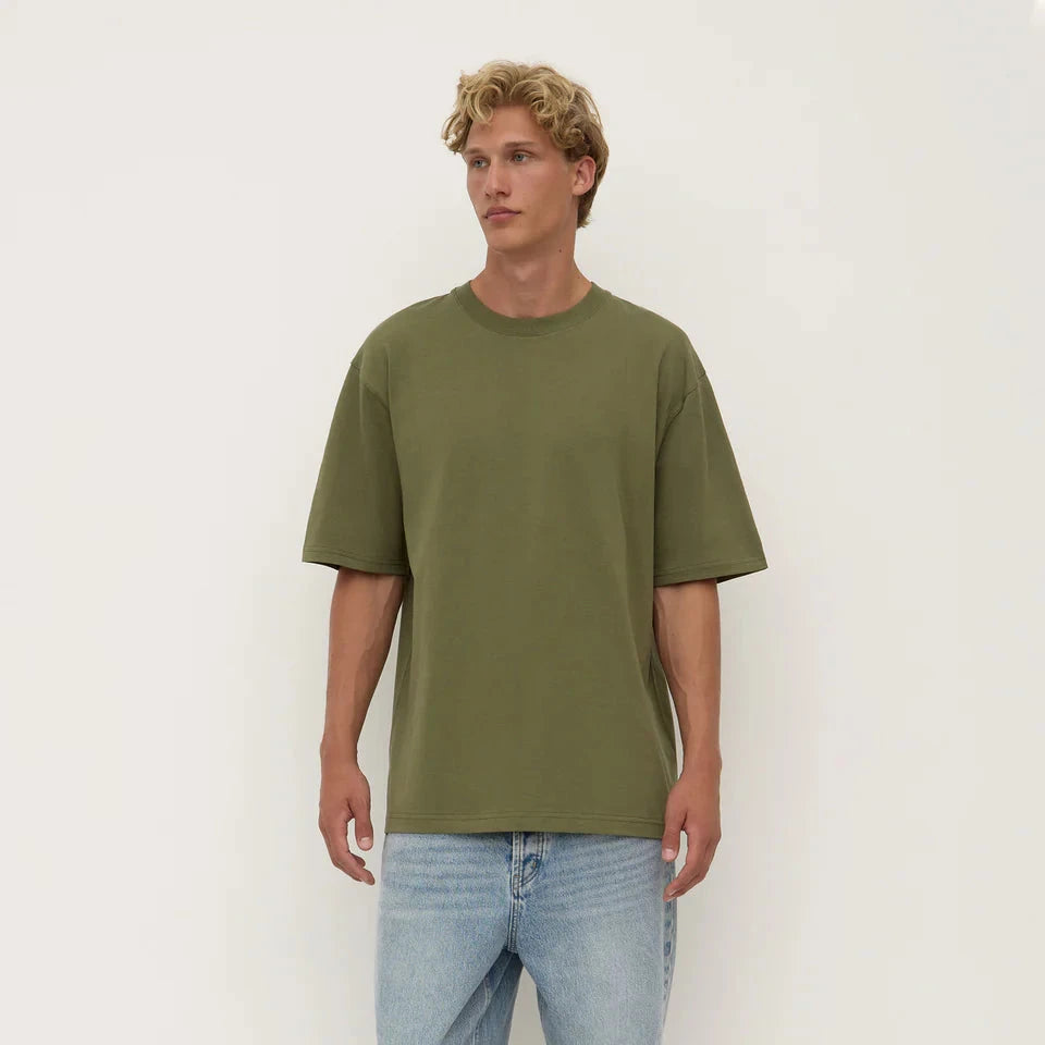 The Knox Organic Oversized Tee is a relaxed mens fit, made from 100% organic cotton jersey that feels substantial and features generous proportions.