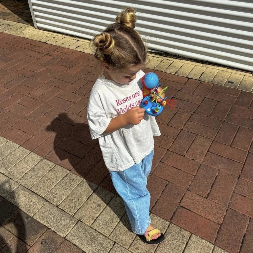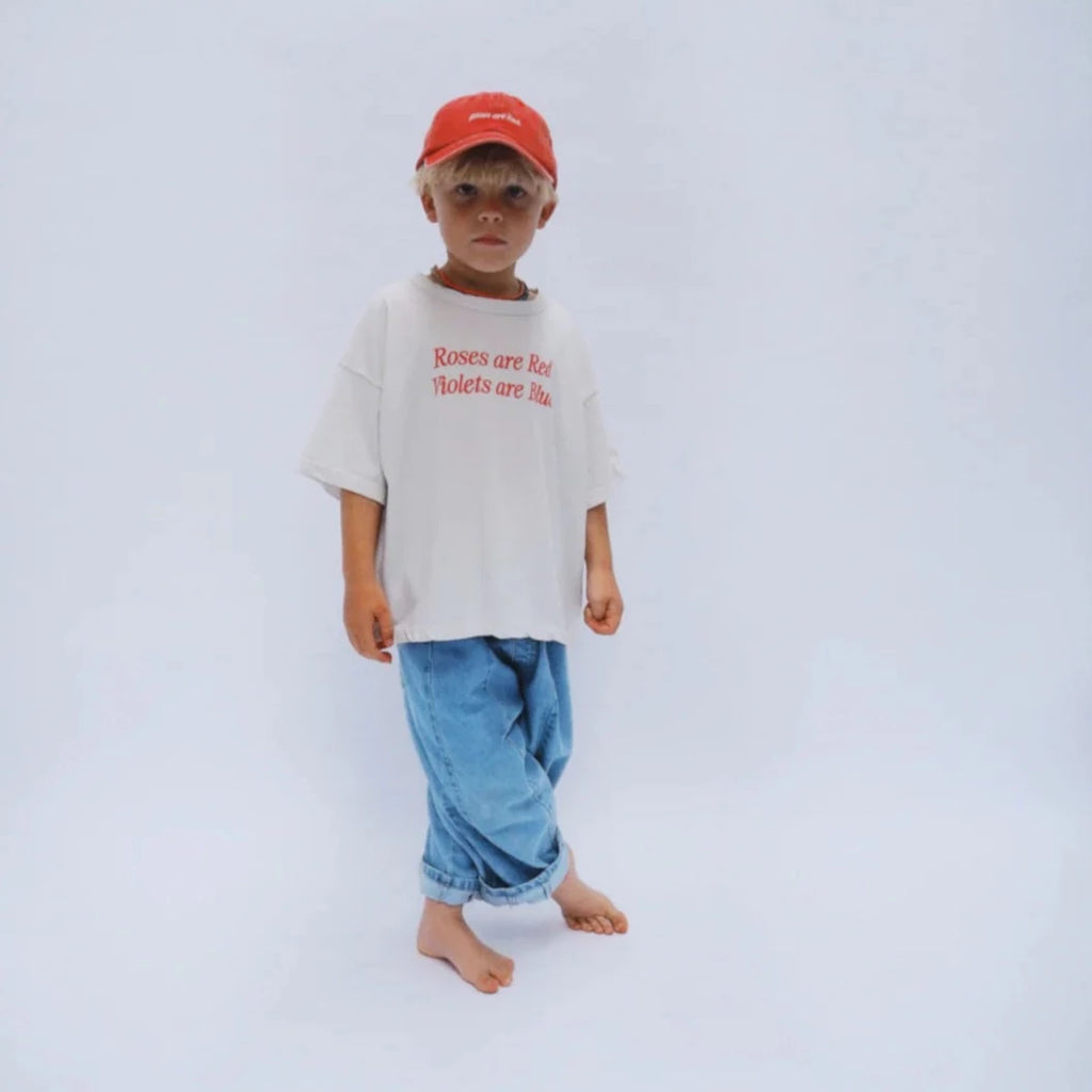 [size and fit notes: we recommend selecting the size closest to your child's age for the perfect relaxed fit. Chey is 6 years old and wears the 5-7 years]