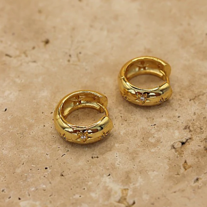 Make a stellar statement with these Stella Earrings. Featuring a celestial design of stars and diamonds, these earrings are a simple yet elegant accessory that will bring light to any outfit.